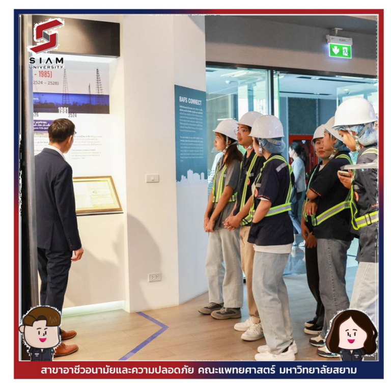 เมื่อวันที่ 26 เมษายน 2567 อาจารย์ปัทวีร์ สุทัศน์ และอาจารย์พรรณโสภาคย์ สังฆะมณี อาจารย์ประจำภาควิชาสาธารณสุขศาสตร์ นำนักศึกษาชั้นปีที่ 3 สาขาอาชีวอนามัยและความปลอดภัย ภาควิชาสาธารณสุขศาสตร์ คณะแพทยศาสตร์ เข้าศึกษาดูงาน ณ บริษัท บริการเชื้องเพลิงการบินกรุงเทพ จำกัด ซึ่งภาควิชาสาธารณสุขศาสตร์เห็นว่าสถานที่ดังกล่าวเหมาะสมให้นักศึกษาได้เรียนรู้และเสริมสร้างประสบการณ์จากการปฎิบัติงาน อันจะเป็นประโยชน์ต่อการนำไปประกอบวิชาชีพได้อย่างถูกต้อง